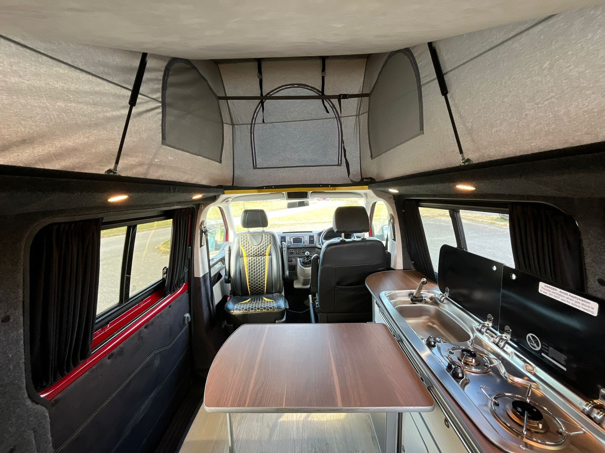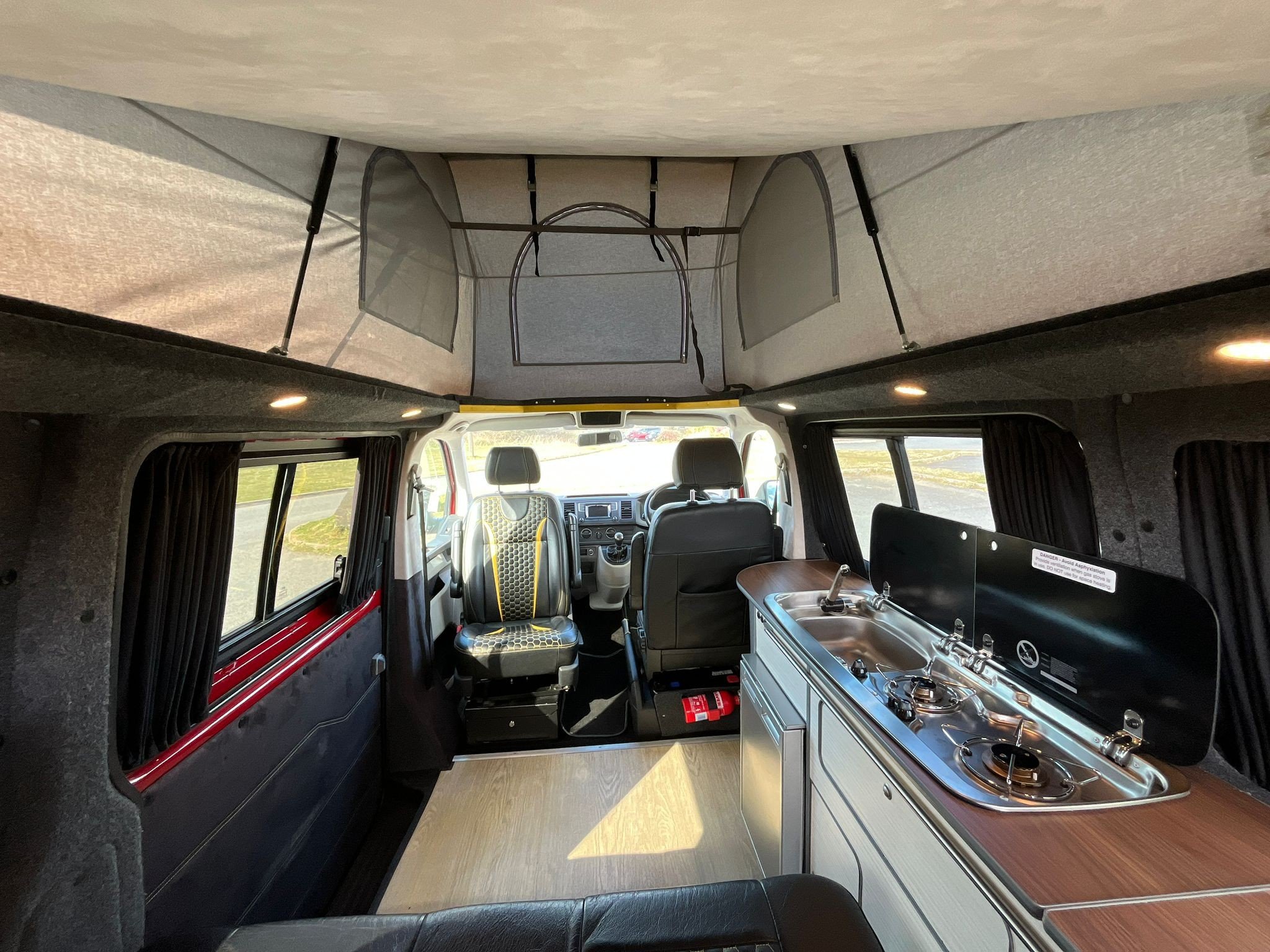 Professionally converted TFI Conversions. A fully converted campervan with a pop top roof. Sleeping 4, with 4 traveling seats.